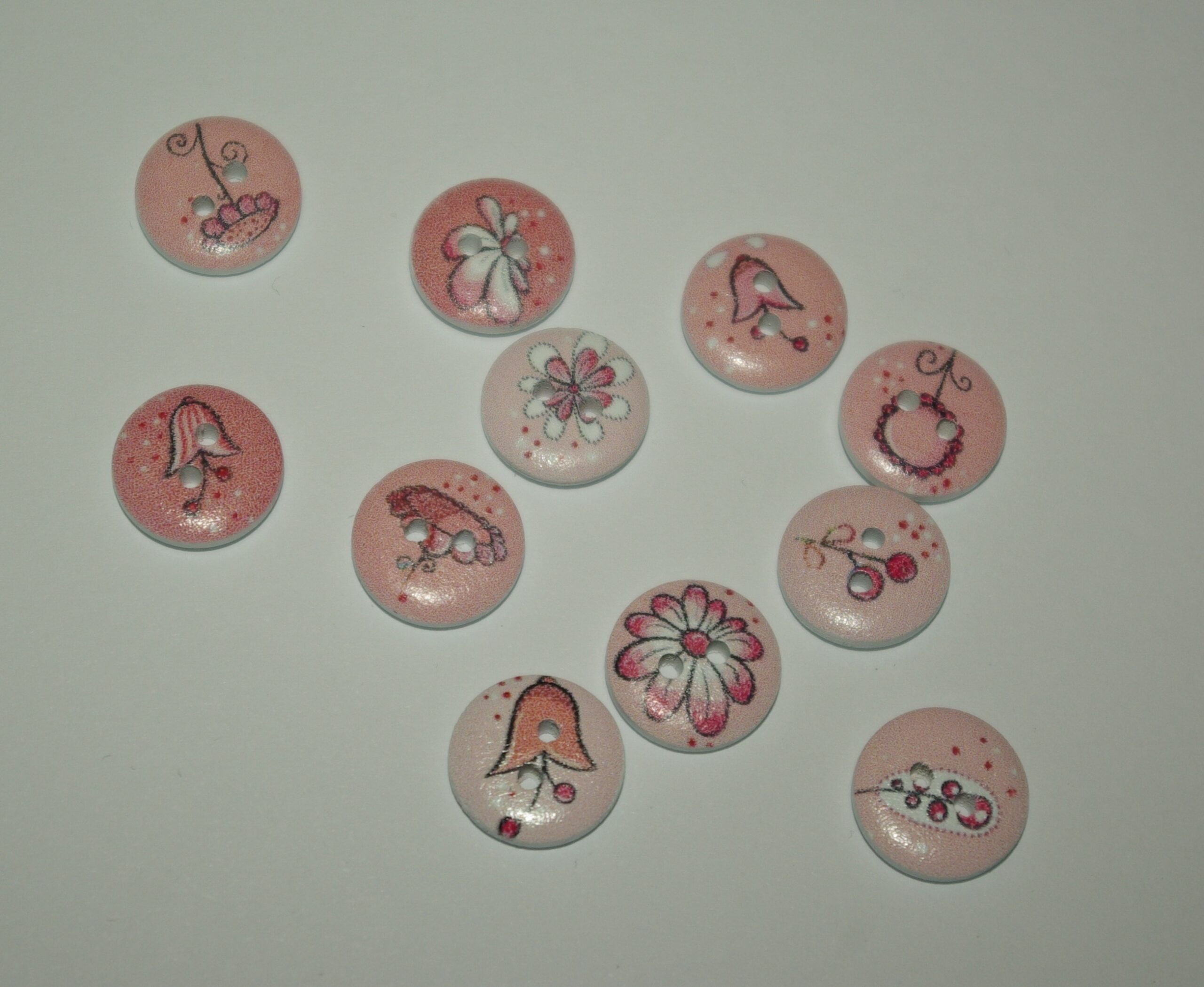Deze super leuke ronde knoopjes in roze hebben meerdere soorten opdrukjes en tinten.