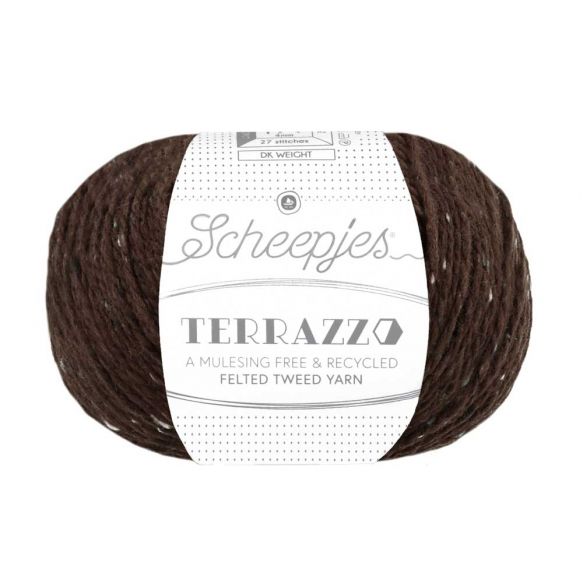 Scheepjes Terrazzo is een volledig gerecyclede wol-viscosemix met een luxe uitstraling en een subtiel gespikkeld kleureffect, dat doet denken aan terrazzo (granito) vloeren.