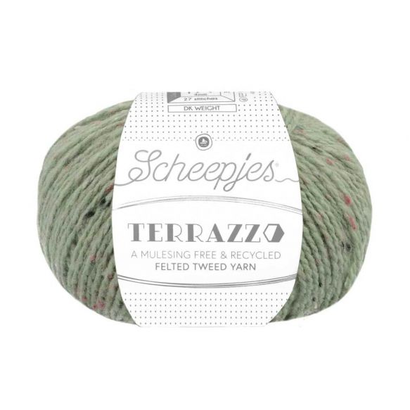 Scheepjes Terrazzo is een volledig gerecyclede wol-viscosemix met een luxe uitstraling en een subtiel gespikkeld kleureffect, dat doet denken aan terrazzo (granito) vloeren.