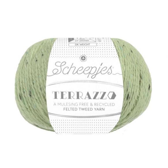 Scheepjes Terrazzo is een volledig gerecyclede wol-viscosemix met een luxe uitstraling en een subtiel gespikkeld kleureffect, dat doet denken aan terrazzo (granito) vloeren.